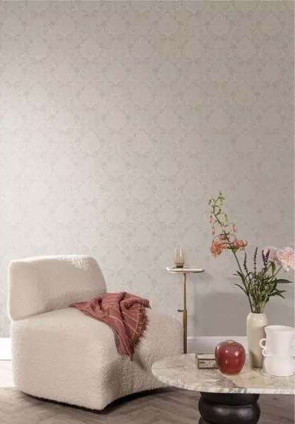 Gregoria is reminiscent of the Western Renaissance. Vintage might be back on trend, but this traditional pattern features a woven background that creates a dynamic contrast between fore- and background, for a more modern wallpaper. The floral pattern has been finished using a special printing technique to produce an embossed effect.