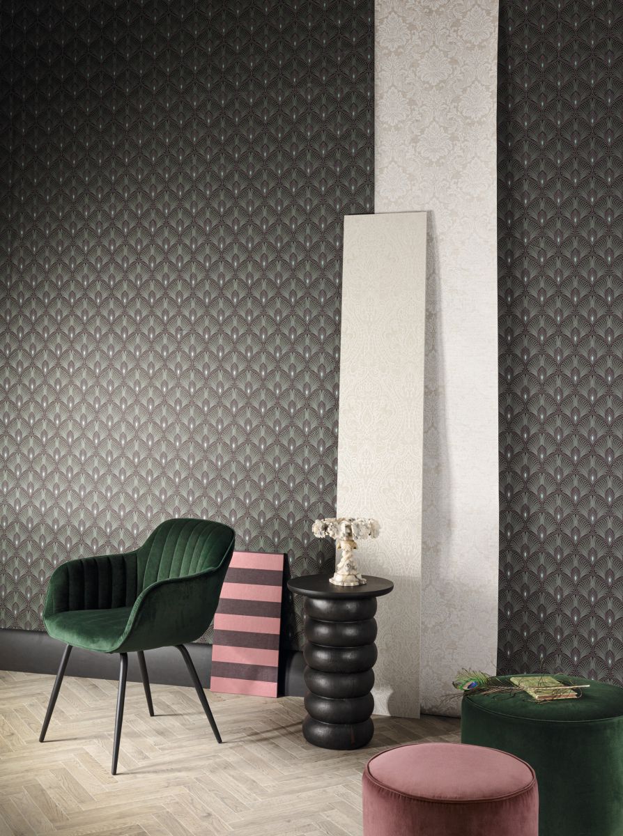 Our elegant Diamond wallpaper was influenced by Art Deco and lends the new collection a fresh design. Its meandering, undulating motif gives a more casual look to your interior. And the design certainly lives up to its name: the delicate embossing in the dots resembles small diamonds.