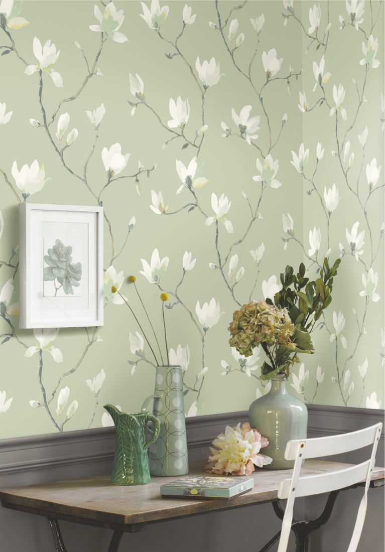 Generous magnolias blossom in sparklingly vivid colours of light, like those of the classic gardens of Suzhou which radiate with elegance and splendour. On this wallpaper, they seem to have been worked in watercolour with considerable poetry. A sumptuous, opulent, cotton satin completes the Suzhou wallpaper for those who are looking for the most stylish decorative inspirations.