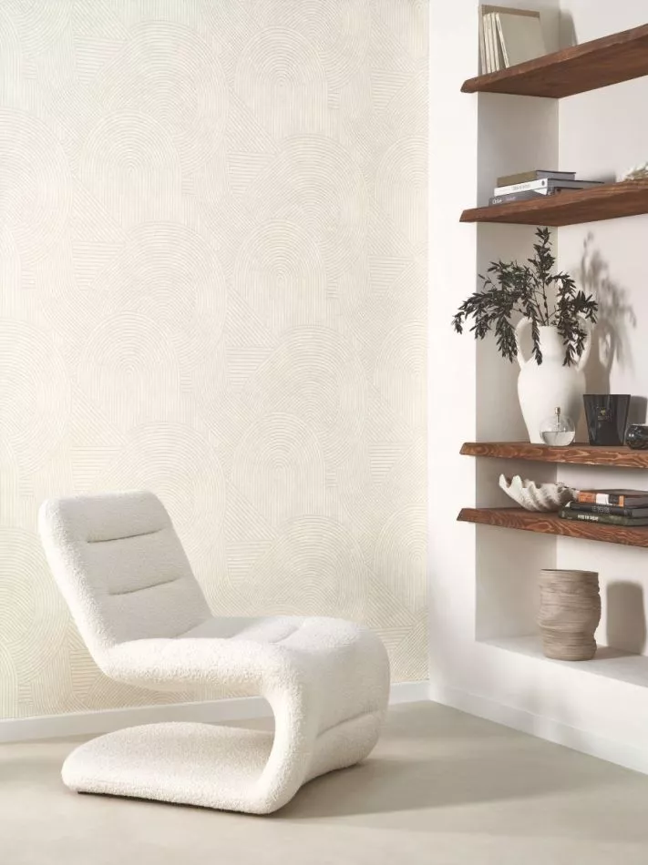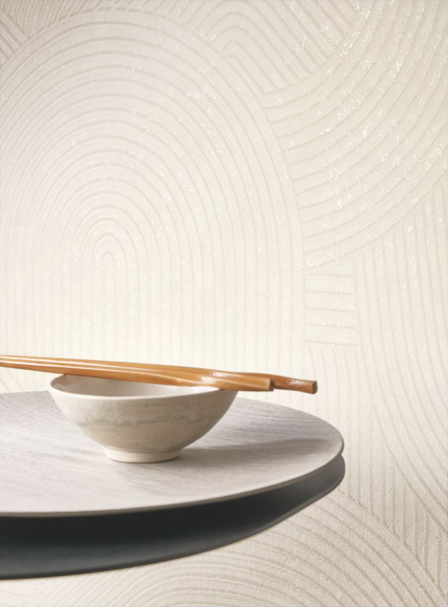 Iconic, this Japanese image is on everyone's mind: a monk who slowly and artistically rakes the sand of a Zen mineral garden. Jardins des Pierres takes up this pattern drawn a thousand times in the ground: large arabesques worked in 3 D thanks to the sanded effect given to the lines of the paper.