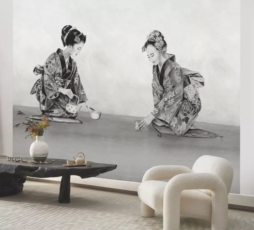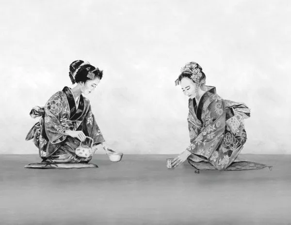 Graceful tea ceremony Unpublished, this panoramic consists of two geishas (or Geiko) at the tea ceremony. Hand-drawn, these two portraits perfectly restore Japanese grace and tradition.