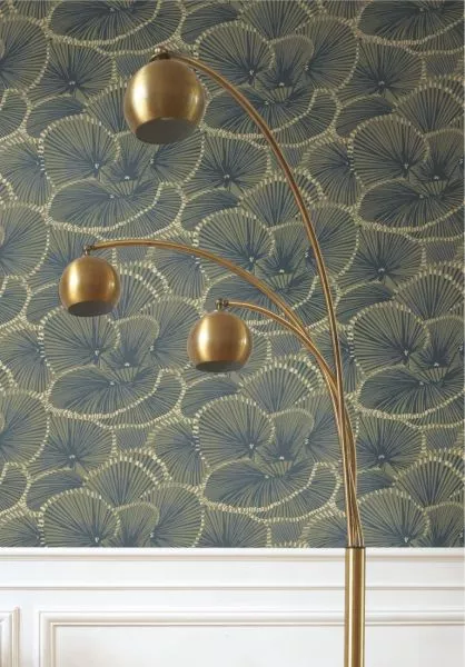 Welcome to one of New York's most famous cabarets: this is what Cabaret wanted to transcribe, with its large stylized fans inspired by dancers, its effervescent movement and its subtle colors. A real gem, this wallpaper is adorned with iridescent details on the tip of each fan palm.