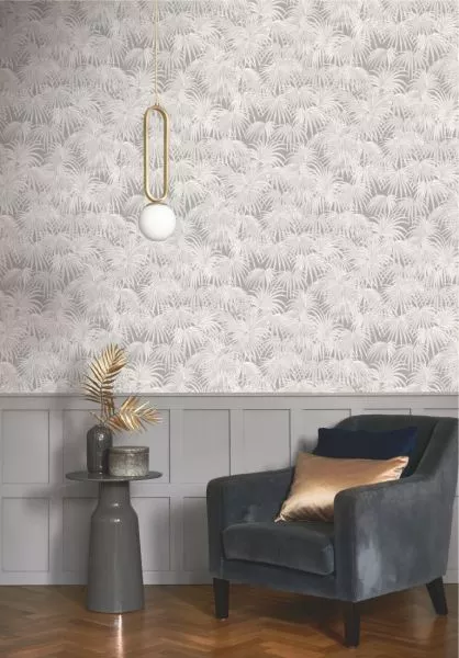 Charleston is a vegetal but not static wallpaper, where the palms take on the appearance of mini fireworks. Discreet, a touch of iridescence comes to rest on the fins to bring out the design.