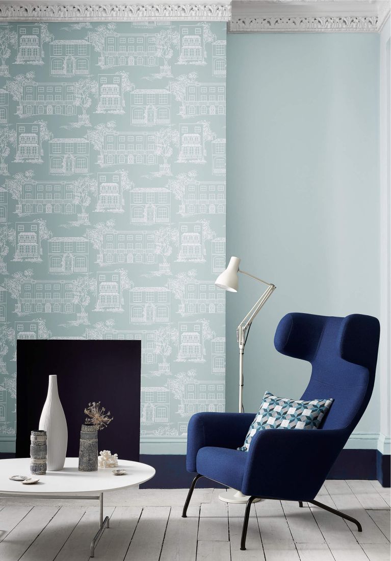 From the hand-printed ‘Apsley Collection’ by John Line & Sons, this relaxed interpretation of an urban Hampstead scene is attributed to designer Els Calvetti. All the line detail is retained and even the original colourways of grey and blue have been accurately recreated for the 21st Century interior.