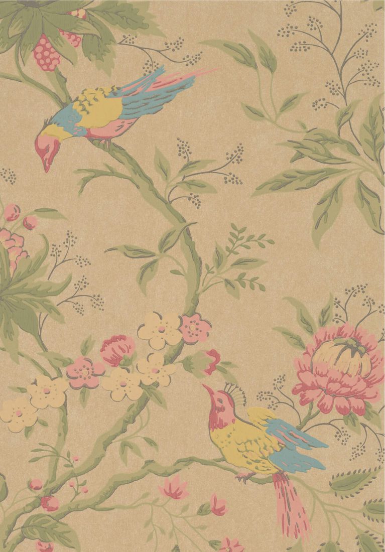Found at Brooke House in Hackney, the document from which this pattern was drawn is identified as 1920s in origin, notably because of the way it had been printed: a ‘gravure’ technique, which only became commercially viable after the turn of the last century. In fact, the design is likely to have been copied from a much earlier paper and the five colourways have been made using the rather more painterly, textural surfaceprint technique which is more typical of the older, original wallpaper.