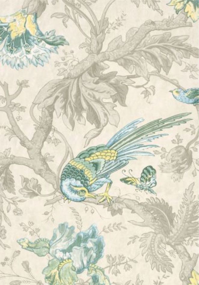 A large-scale, late-19th century wallpaper with a bold pattern of exotic birds and flowers. The paper had been used in a curving stairwell in Crowe Hall, a Suffolk manor house where the vertical nature of the trailing pattern emphasised the height of the room. It is likely to have been hung around the turn of the century and was recovered during extensive conservation work to the house much later. This design is an existing and much-admired part of the Little Greene portfolio; it is available in three new colourways as well as four existing ones.