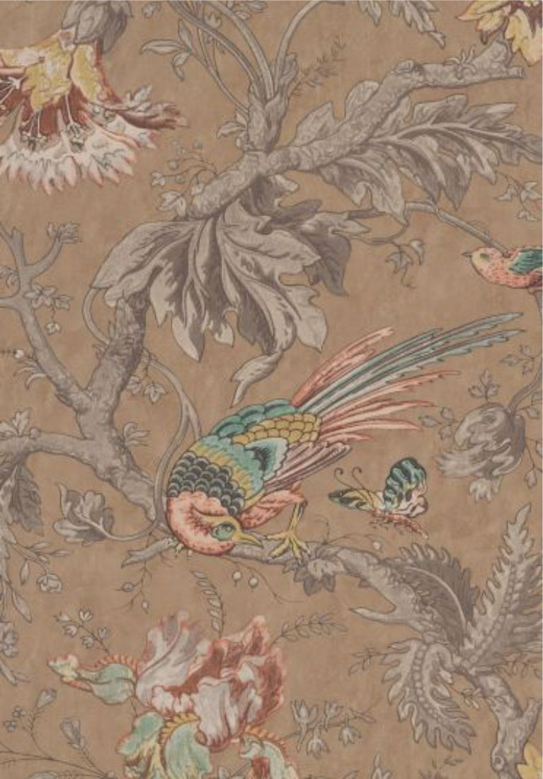 A large-scale, late-19th century wallpaper with a bold pattern of exotic birds and flowers. The paper had been used in a curving stairwell in Crowe Hall, a Suffolk manor house where the vertical nature of the trailing pattern emphasised the height of the room. It is likely to have been hung around the turn of the century and was recovered during extensive conservation work to the house much later. This design is an existing and much-admired part of the Little Greene portfolio; it is available in three new colourways as well as four existing ones.
