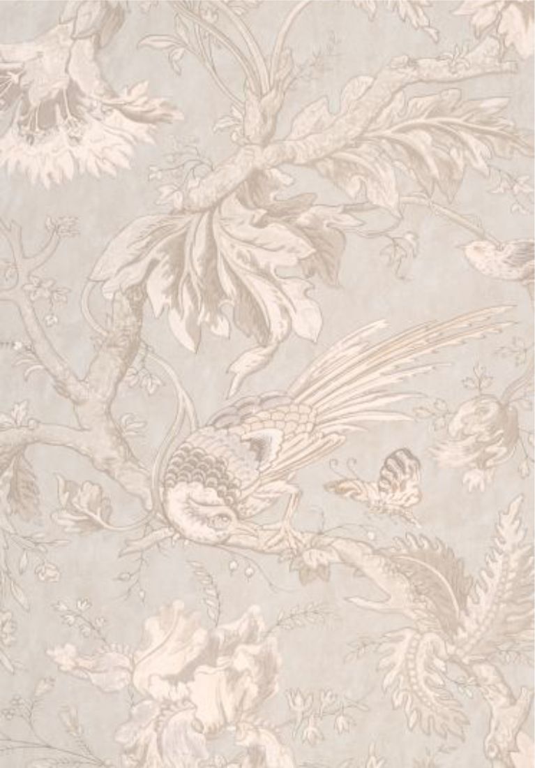 A large-scale, late-19th century wallpaper with a bold pattern of exotic birds and flowers. The paper had been used in a curving stairwell in Crowe Hall, a Suffolk manor house where the vertical nature of the trailing pattern emphasised the height of the room. It is likely to have been hung around the turn of the century and was recovered during extensive conservation work to the house much later. This design is an existing and much-admired part of the Little Greene portfolio; it is available in three new colourways as well as four existing ones.