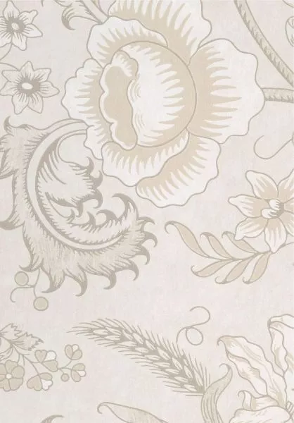 An early block print design, the original paper once adorned the walls of a ground floor room, most probably a dining room, in a historic house in Salisbury, Wiltshire. Its simple graphic elements are typical of a design that would have been cut from wood and applied by hand with the assistance of a suspended block press. Although the application of several print colours required the dedication and accuracy of a master craftsman, wallpaper as decoration at this time was the preserve of the privileged few and, as such, expensive statement designs were in higher demand than cheaper alternatives.