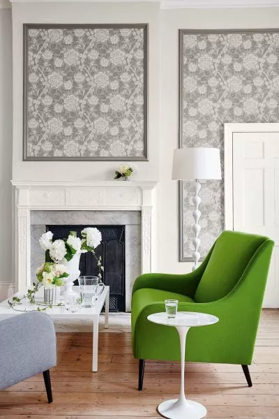 Gustav (c1875) was found in poor condition, making it somewhat difficult to date accurately, but archivists estimate it as mid-late 18th Century. Found in Eagle House, a Jacobean manor in Wimbledon, it bears the hallmarks of a classic block print, but in fact some of the flowers on the original were painted by hand and applied over the pre-printed trail as part of a decorative border. The scale of the pattern is reminiscent of a large damask design, but the muted colourways adapted for ‘Archive Trails’ mean this paper can be used all-over, without overpowering a room.