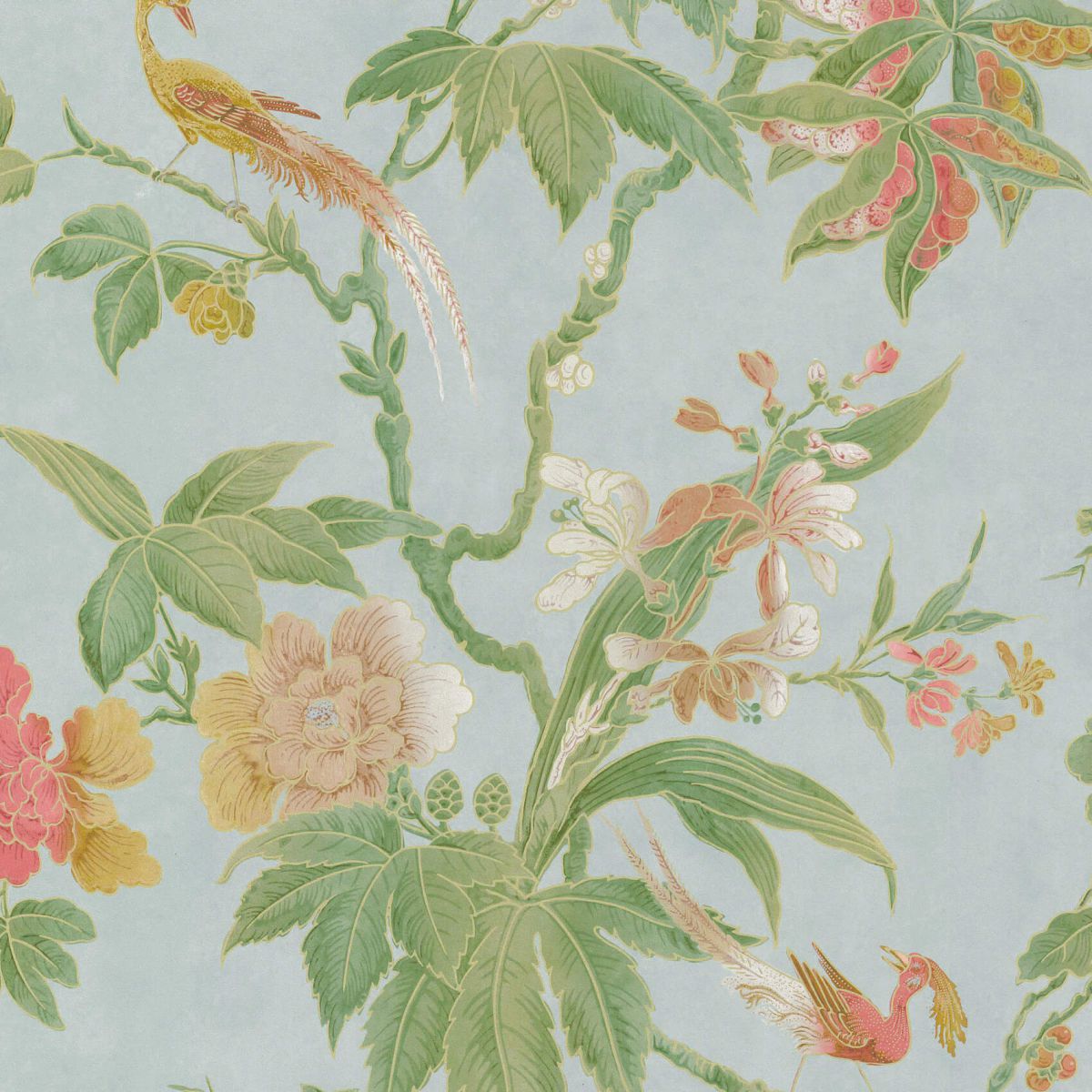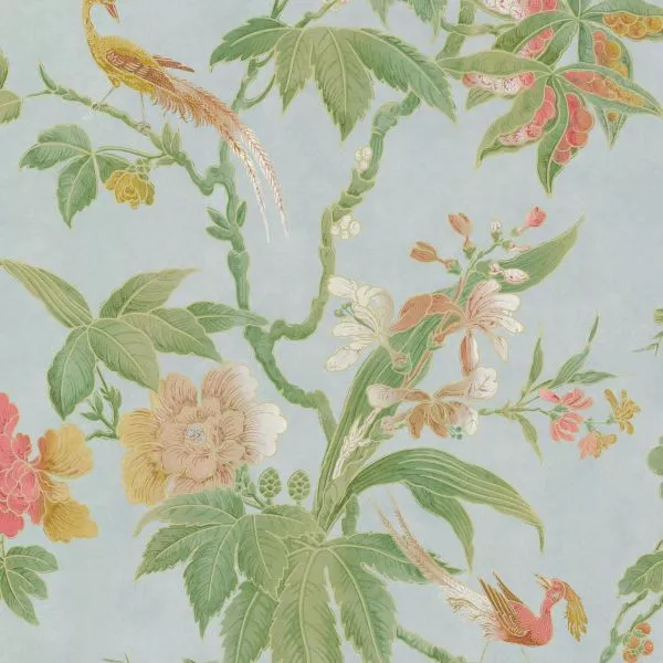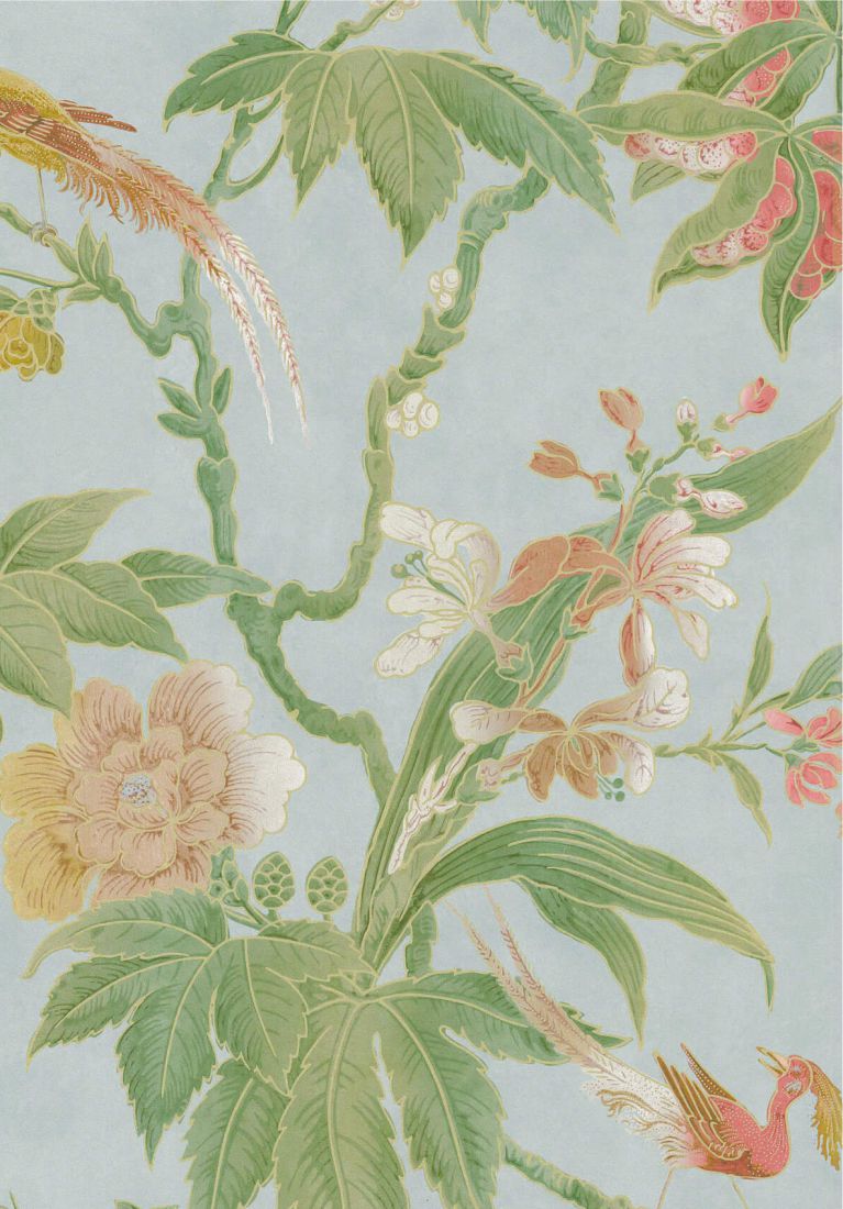 Paradise (c1940) celebrates a truly rich mix of styles. The document from which this paper is drawn is actually a 20th Century piece, but the subject – exotic flora and the familiar oriental ho-ho birds - is classic ancient Chinoiserie, whilst the colouration in the original is very much in the style of a 19th Century French paper. This design retains the original’s oversized repeat and has been reproduced in six stunning colourways.