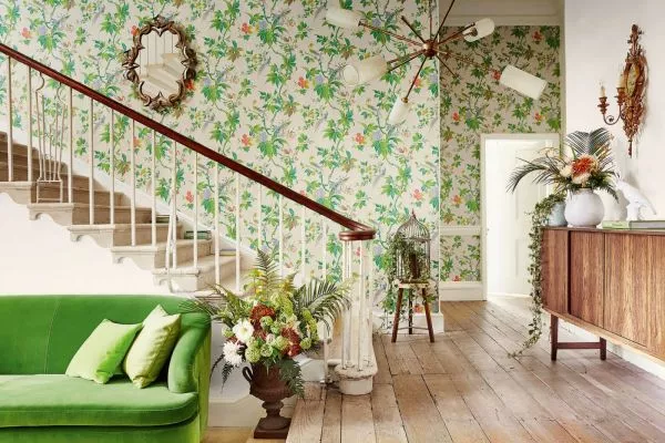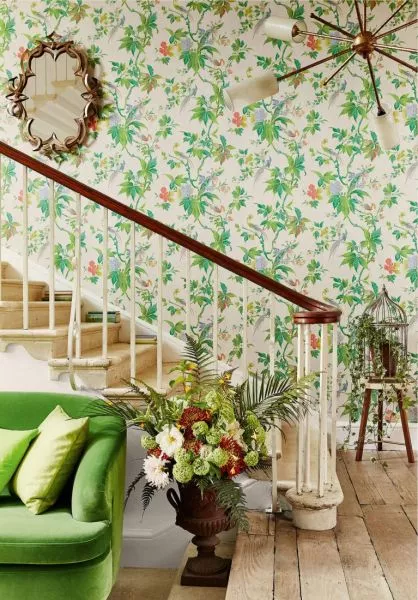 Paradise (c1940) celebrates a truly rich mix of styles. The document from which this paper is drawn is actually a 20th Century piece, but the subject – exotic flora and the familiar oriental ho-ho birds - is classic ancient Chinoiserie, whilst the colouration in the original is very much in the style of a 19th Century French paper. This design retains the original’s oversized repeat and has been reproduced in six stunning colourways.