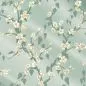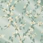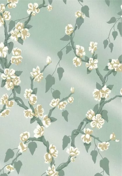 Sakura (c1936) is a pretty trail of matt leaves and delicate blossom originating in France. The surface detail has been retained, contributing to its charming layered depth, whilst the colouration has retained an elegant, seductive informality. A mica ground has been used on some colourways to exaggerate the interplay of light and contrast on the surface of the paper.