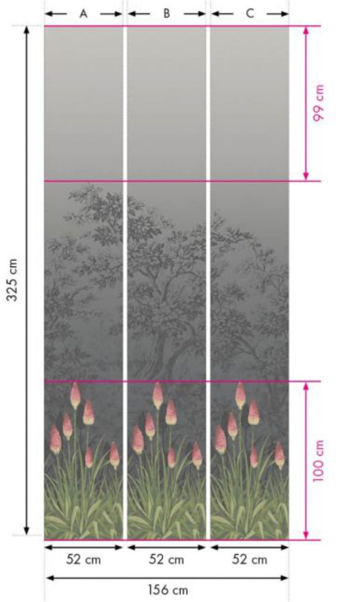 Supplied in a standard 10m roll, there are three drops, each 3.25m in height. The pokers repeat every drop but the full background scene is only completed when all three drops are hung.
