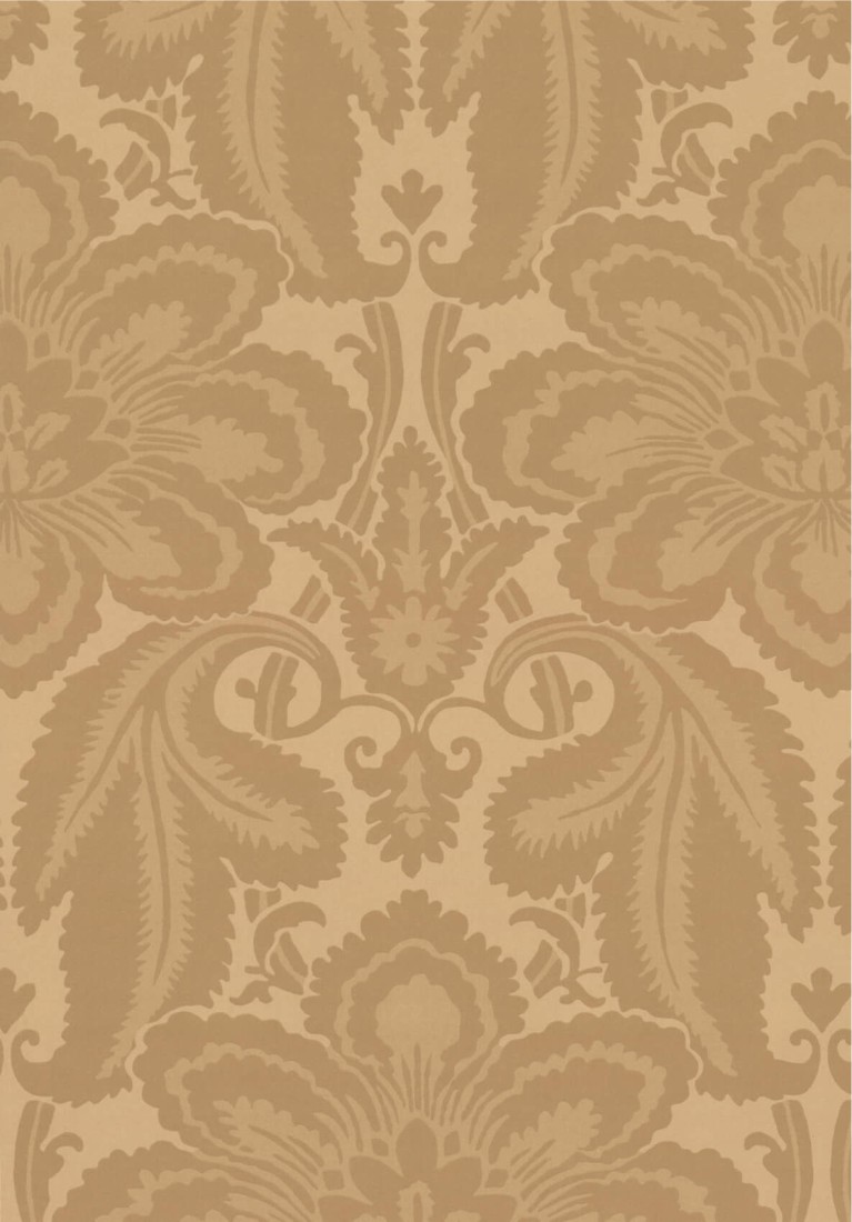 Reminiscent of Spitalfields silks, this paper, found in Albemarle Street, off Piccadilly, had an enormous pattern repeat of 6ft. Originally produced in a dark blue flock on a light ground, it was unusual to find so bold and expensive a paper used as here, in a low ceilinged, second floor bedroom. Such a grand paper would have been designed to have been on show – more often in a downstairs reception room where guests would be entertained.