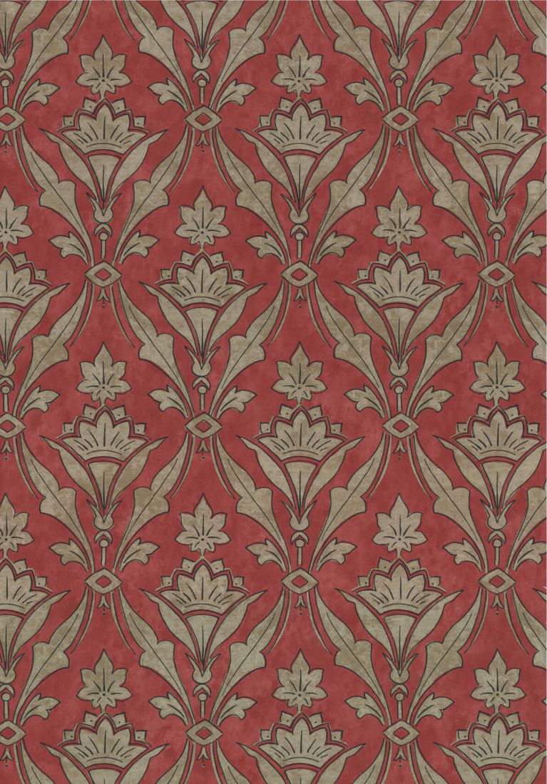 The property from which this design hails was built in the mid-19th century on the site of the infamous Marshalsea Prison, which for nearly 500 years was notorious for the incarceration of London’s debtors, including Charles Dickens’ father in 1824. The earliest paper retrieved from a laminate of four, this gothic trellis design with Moorish influences was the first paper to adorn the walls of one of the properties that replaced the prison in the late 1870s.