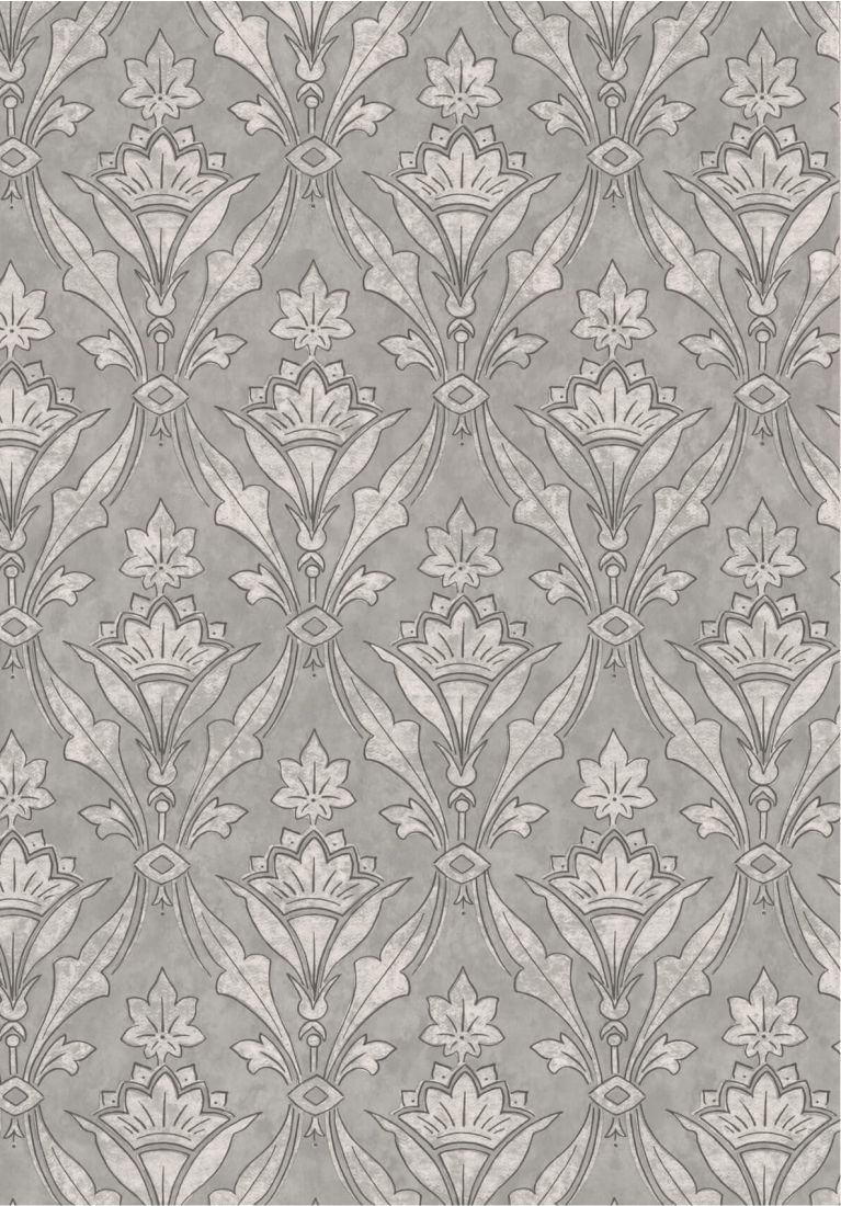 The property from which this design hails was built in the mid-19th century on the site of the infamous Marshalsea Prison, which for nearly 500 years was notorious for the incarceration of London’s debtors, including Charles Dickens’ father in 1824. The earliest paper retrieved from a laminate of four, this gothic trellis design with Moorish influences was the first paper to adorn the walls of one of the properties that replaced the prison in the late 1870s.