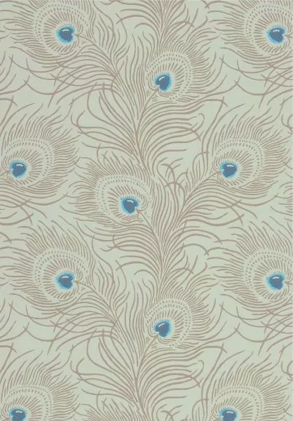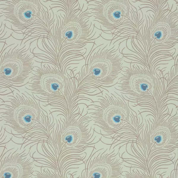 A flamboyant peacock feather design, this wallpaper was found in the attics of 18 Carlton House Terrace, a beautiful stucco-faced London town house overlooking The Mall. Originally machine-printed in green on a yellow background, the surface-printed technique used to recreate it accurately reflects the feel of the original, whilst a judicious splash of colour in the feather provides something on which to anchor.