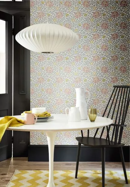 An Arts & Crafts motif in the manner of Voysey, a leading light of the movement who was perhaps more famous as an architect than as a wallpaper designer. Although this colourful wallpaper was removed from a 19th century house in Kensington, its actual design dates it to the early 20th century.
