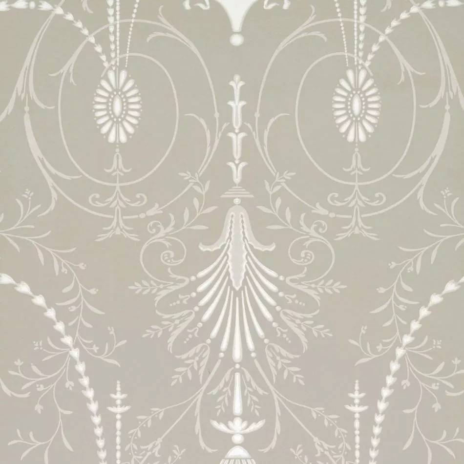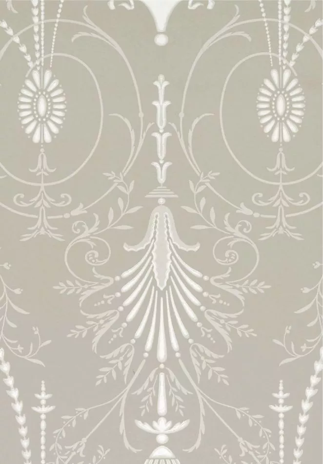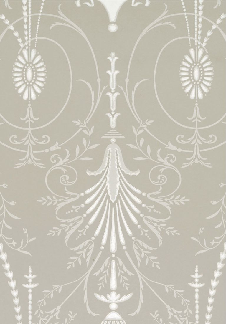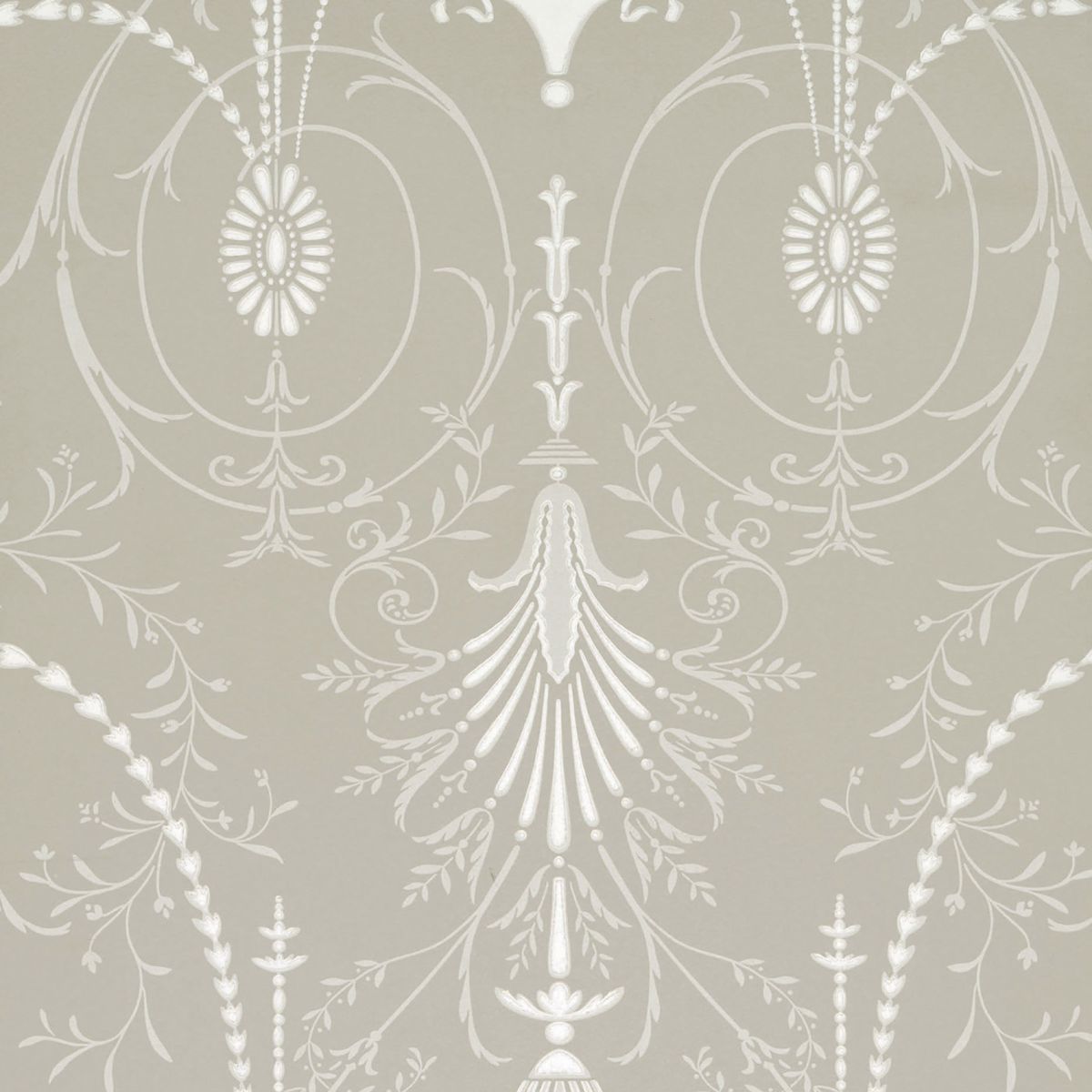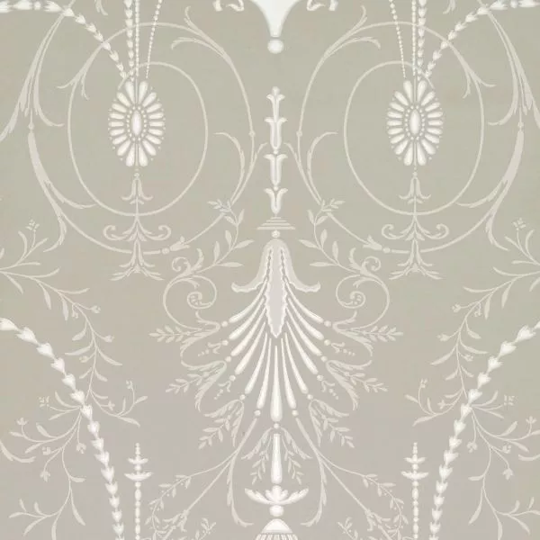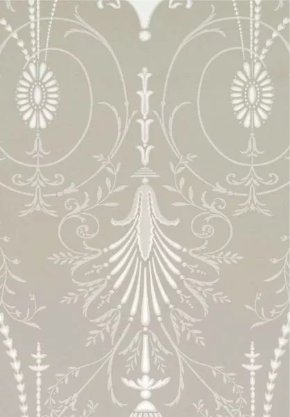 A large-scale pattern, reminiscent of an early 20th century interpretation of one of Robert Adam’s designs. This paper was discovered just after the death of Queen Mary, who lived in Marlborough House until 1953, after which the house became the headquarters of the Commonwealth Secretariat.