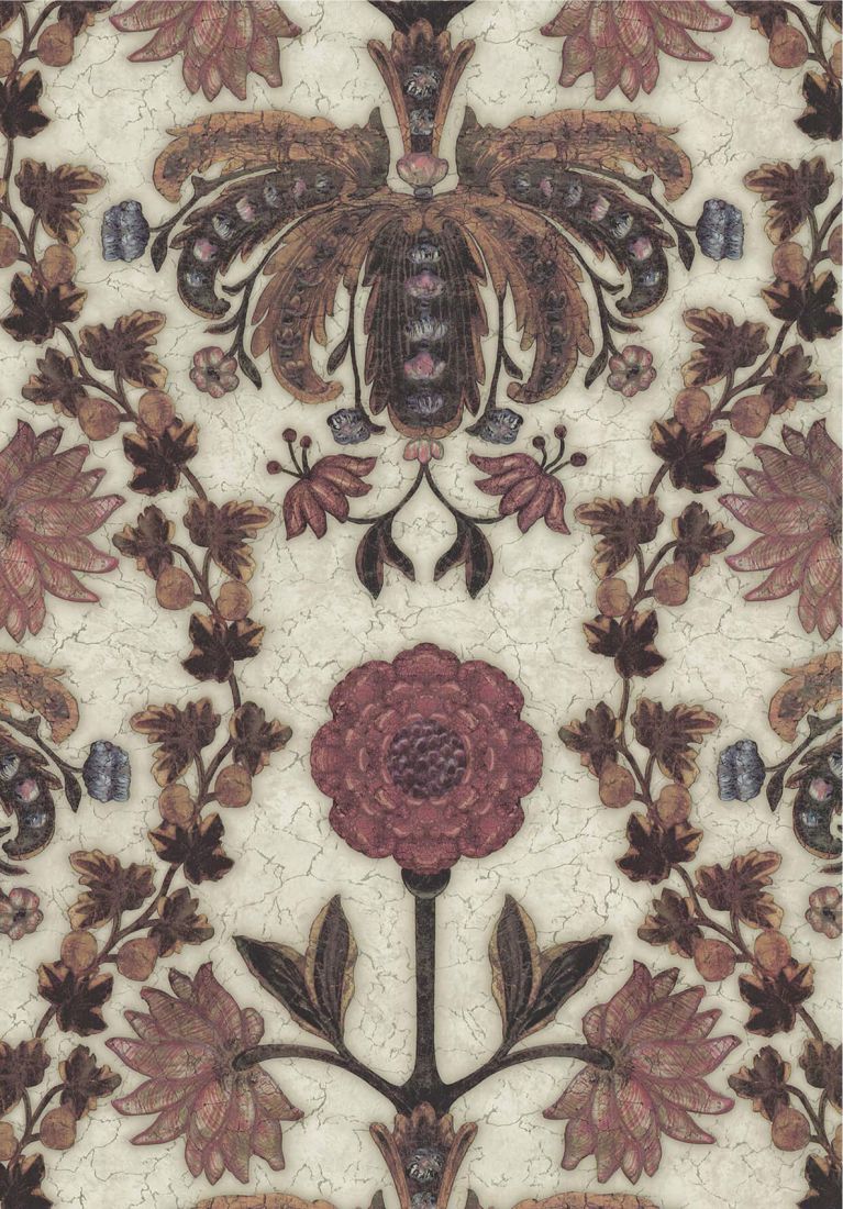 Based on one of the oldest surviving documents in English Heritage’s wallpaper archive, this fragment from an embossed leather wall hanging actually predates wallpaper. Panels of embossed and painted leather, usually with a floral pattern, were popular, though expensive, modes of decoration in the late-16th and 17th centuries. These panels were sewn together to create large-scale decorative hangings, much in the same way that drops of wallpaper are hung side-by-side to create a much more impressive statement.