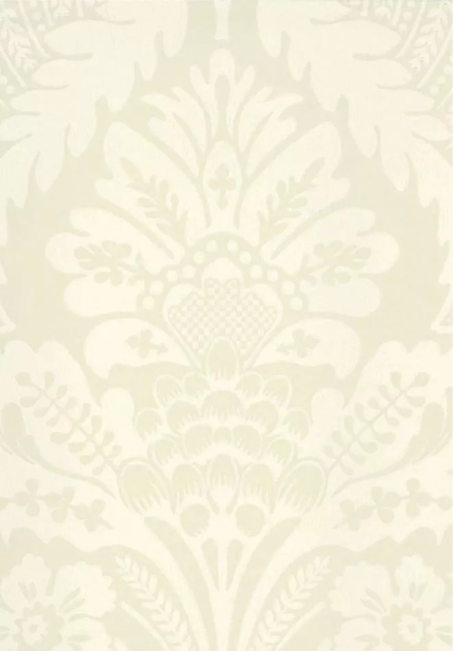 A classic damask design that is very typical of the popular large-scale pomegranate patterns of the mid-18th century, this would originally have been a flock wallpaper and hung in a grand English home. Flock papers were an English speciality and were really just imitations of expensive textiles, but nonetheless, they were expensive to produce and a bold statement of luxury and social status.
