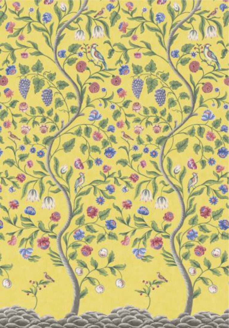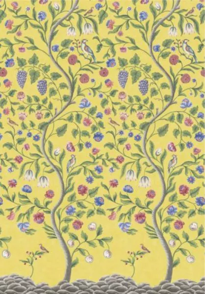 This tree of life pattern is derived directly from the leather wallpaper in the dining room at Bateman's in East Sussex. Intricate designs like these were inspired by 17th-century Indian chintz weaves, which often depicted meandering flowering trees with birds among the branches. Leather wallpaper was the forerunner of wallpaper as we know it today. And although the manufacture of such leather panels required a different skill, their application and effect is very similar to that of early wallpaper. They are of proven Dutch origin and were bought in 1902 by the Rudyard Kipling couple for 100 guineas after they had bought Bateman's as a family home. The width of the 'Mandalay' wallpaper is 70cm and the pattern has been adjusted to repeat effortlessly and continuously along the wall.