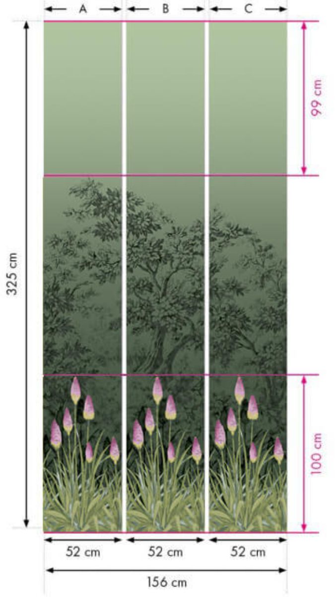 Supplied in a standard 10m roll, there are three drops, each 3.25m in height. The pokers repeat every drop but the full background scene is only completed when all three drops are hung.