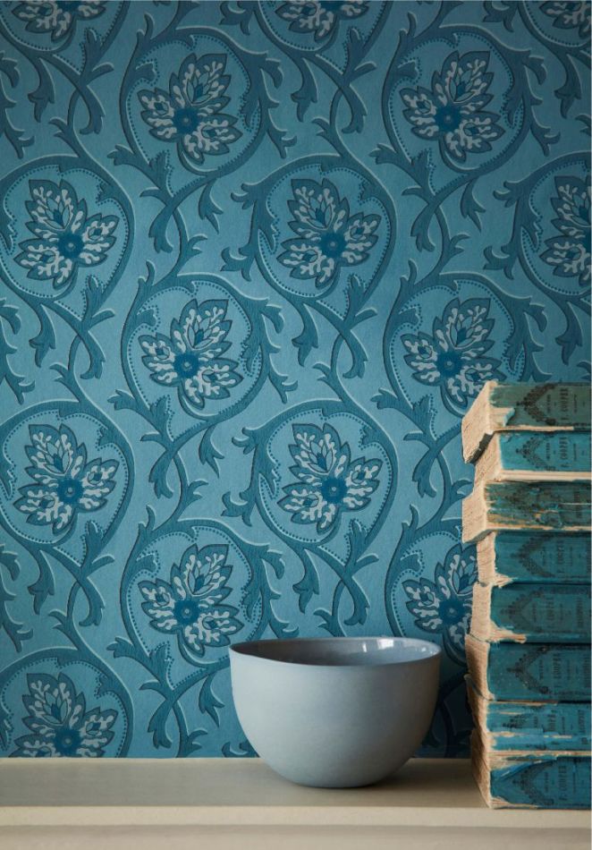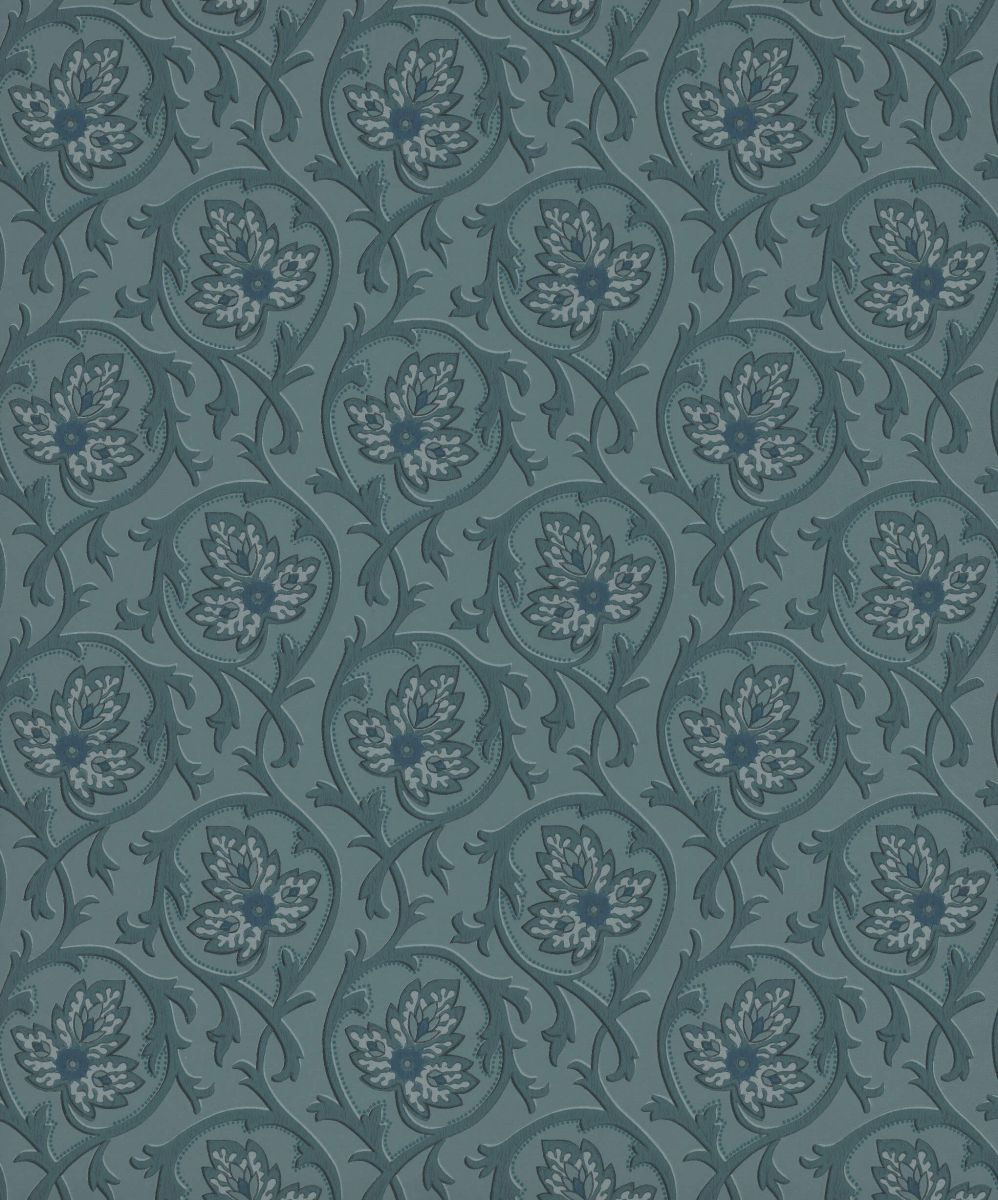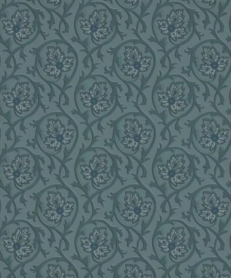 This classic leafy tendril pattern was printed onto the surface for a traditional hand-painted finish and was used to decorate an attic at Oxburgh Hall. Although the design element of Spanish influenced