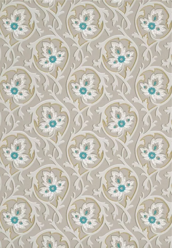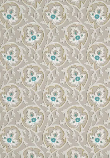 This classic leafy tendril pattern was printed onto the surface for a traditional hand-painted finish and was used to decorate an attic at Oxburgh Hall. Although the design element of Spanish influenced