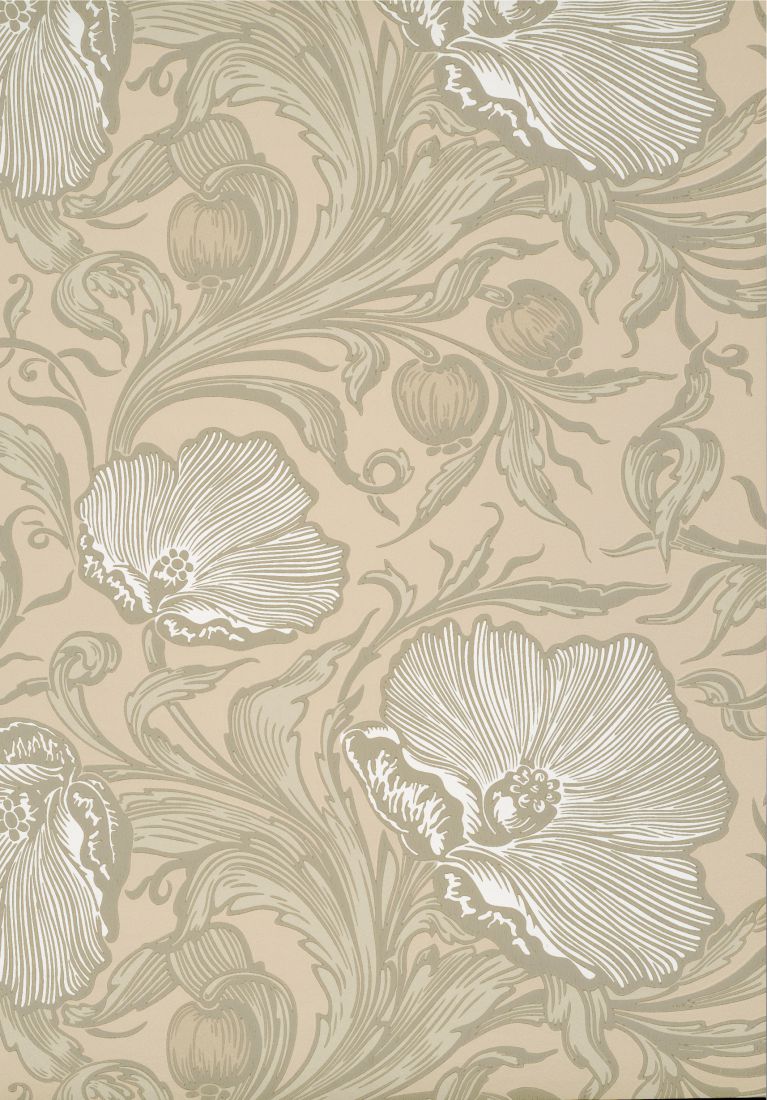 This extravagant floral design featuring large, stylized poppies is a classic example of late 19th century production. Although the designer is unknown, it is believed to be the work of Arthur L. Gwatkin, who produced wallpaper with a very similar feel. This wallpaper was found on the walls of the corridor leading to the top of the stairs at Felbrigg Hall. A few rolls of wallpaper were also found in the attic. 'Poppy Trail' is available in five shades.