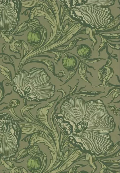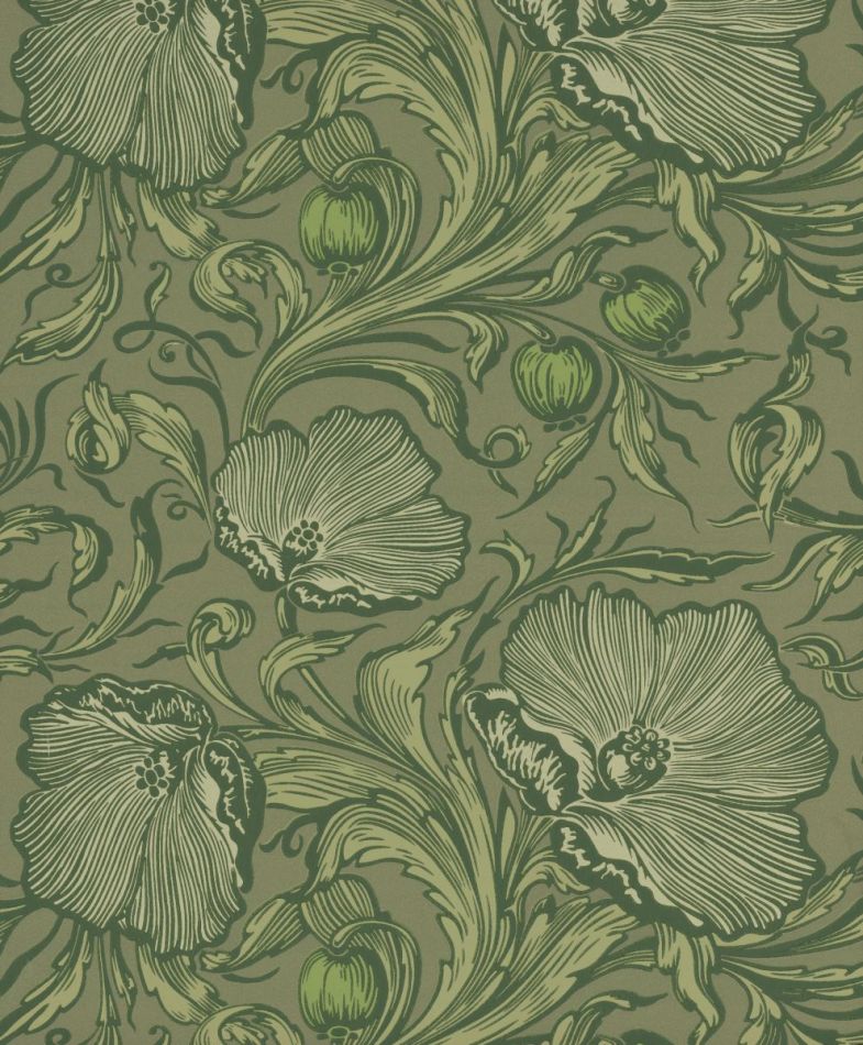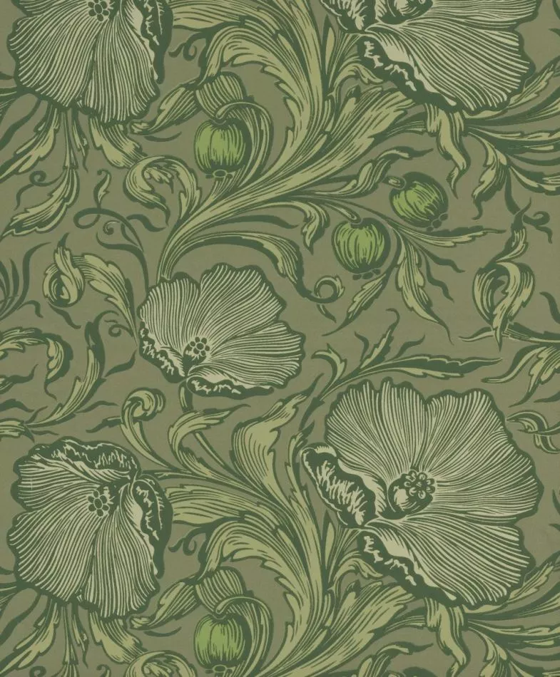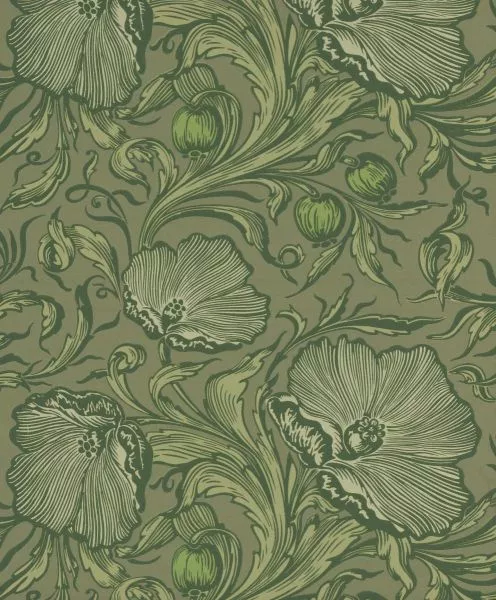 This extravagant floral design featuring large, stylized poppies is a classic example of late 19th century production. Although the designer is unknown, it is believed to be the work of Arthur L. Gwatkin, who produced wallpaper with a very similar feel. This wallpaper was found on the walls of the corridor leading to the top of the stairs at Felbrigg Hall. A few rolls of wallpaper were also found in the attic. 'Poppy Trail' is available in five shades.