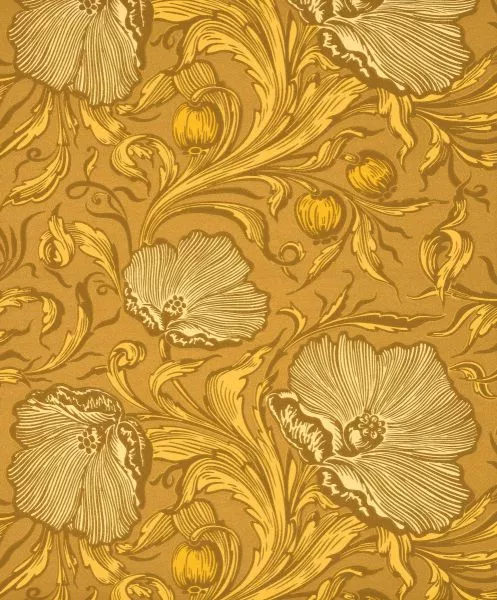 This extravagant floral design featuring large, stylized poppies is a classic example of late 19th century production. Although the designer is unknown, it is believed to be the work of Arthur L. Gwatkin, who produced wallpaper with a very similar feel. This wallpaper was found on the walls of the corridor leading to the top of the stairs at Felbrigg Hall. A few rolls of wallpaper were also found in the attic. 'Poppy Trail' is available in five shades.