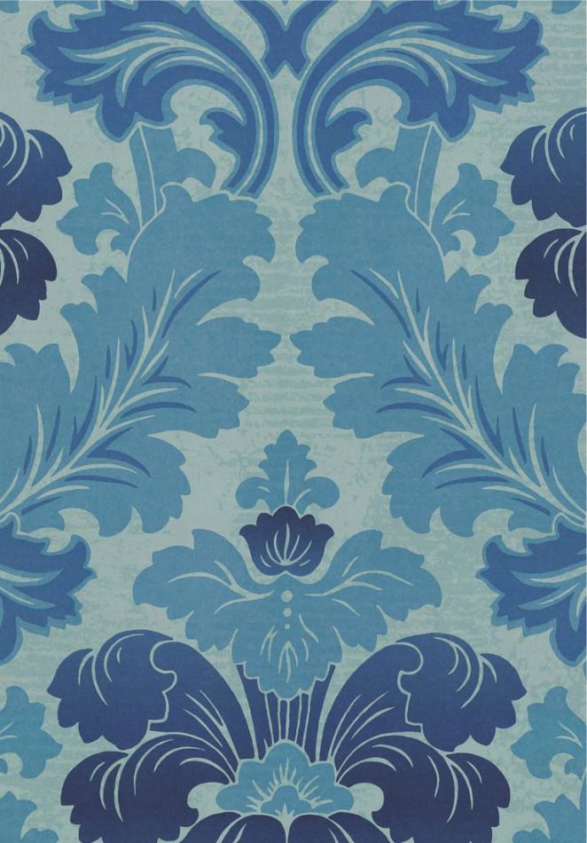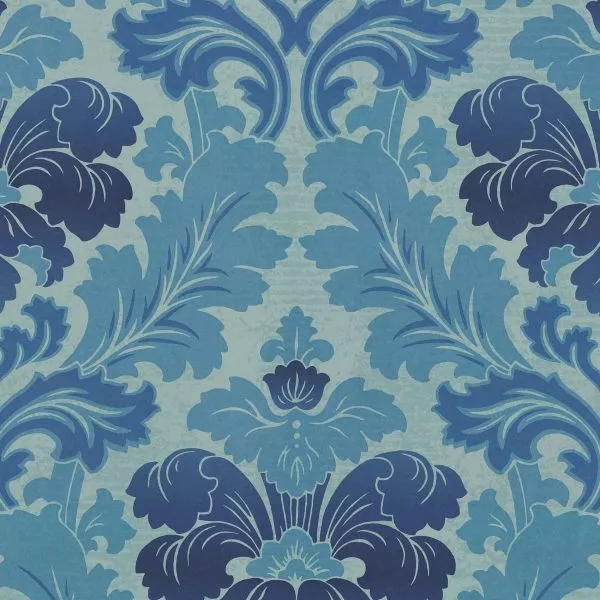 A reworking of an authentic 19th-century French damask, this wallpaper was recently discovered as a painted work of art in a Parisian studio. It's a common misconception that the colors used for decoration in the past were only drab, as the rich tones, layers and gradients seen here are a faithful recreation of the original wallpaper, yet have something very contemporary about them.