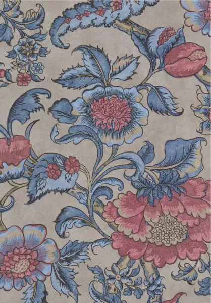 One of the largest and best preserved specimens in the archive. This design repeats every 99cm and has an unusual width of 80cm, meaning each panel is significantly wider than a standard 52cm roll of wallpaper. The surviving example was found in the back bedroom of a house built for the gentry. Originally wallpapered on panels, it featured additional flowers that had been added by hand to hide the edges of the wallpaper.