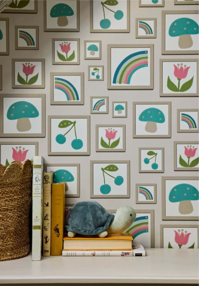 Another quirk is the rainbow’s inverted colour spectrum - it would correctly show the red on the outside and blue (or violet) on the inside, but is another original detail retained in the wallpaper pattern.