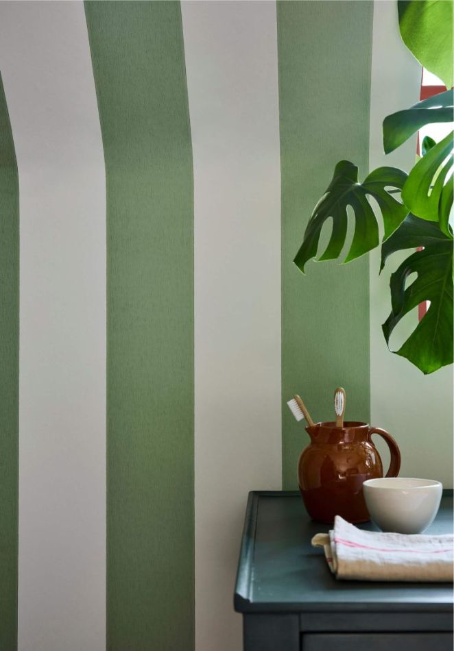 In contemporary interior design, wide stripes are still used to balance pattern, but have taken on more usability by virtue of the more relaxed, coordinating colour palette in which they are now available.