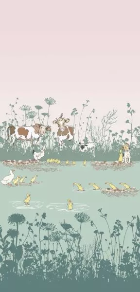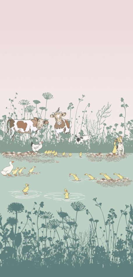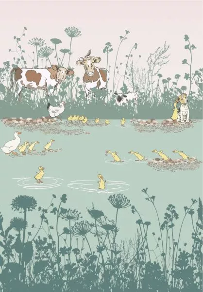 A children’s bedroom at Wightwick Manor in the West Midlands features a frieze which includes several of Aldin’s farm animals, including a mother hen with her chicks and a playful line of running ducks.